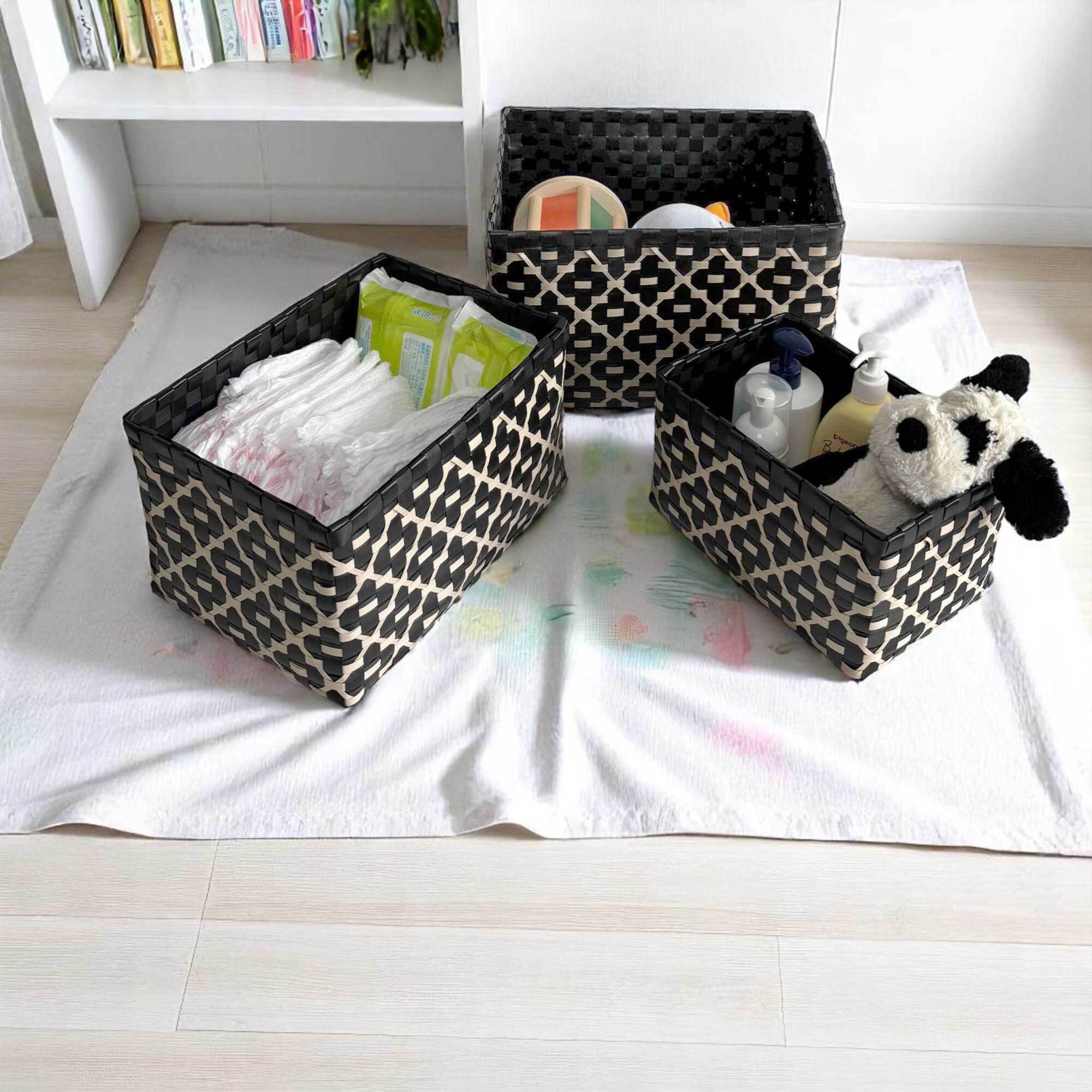 ◈ ナチュラルな風合いとモダンな柄が魅力の手編みバスケット。
