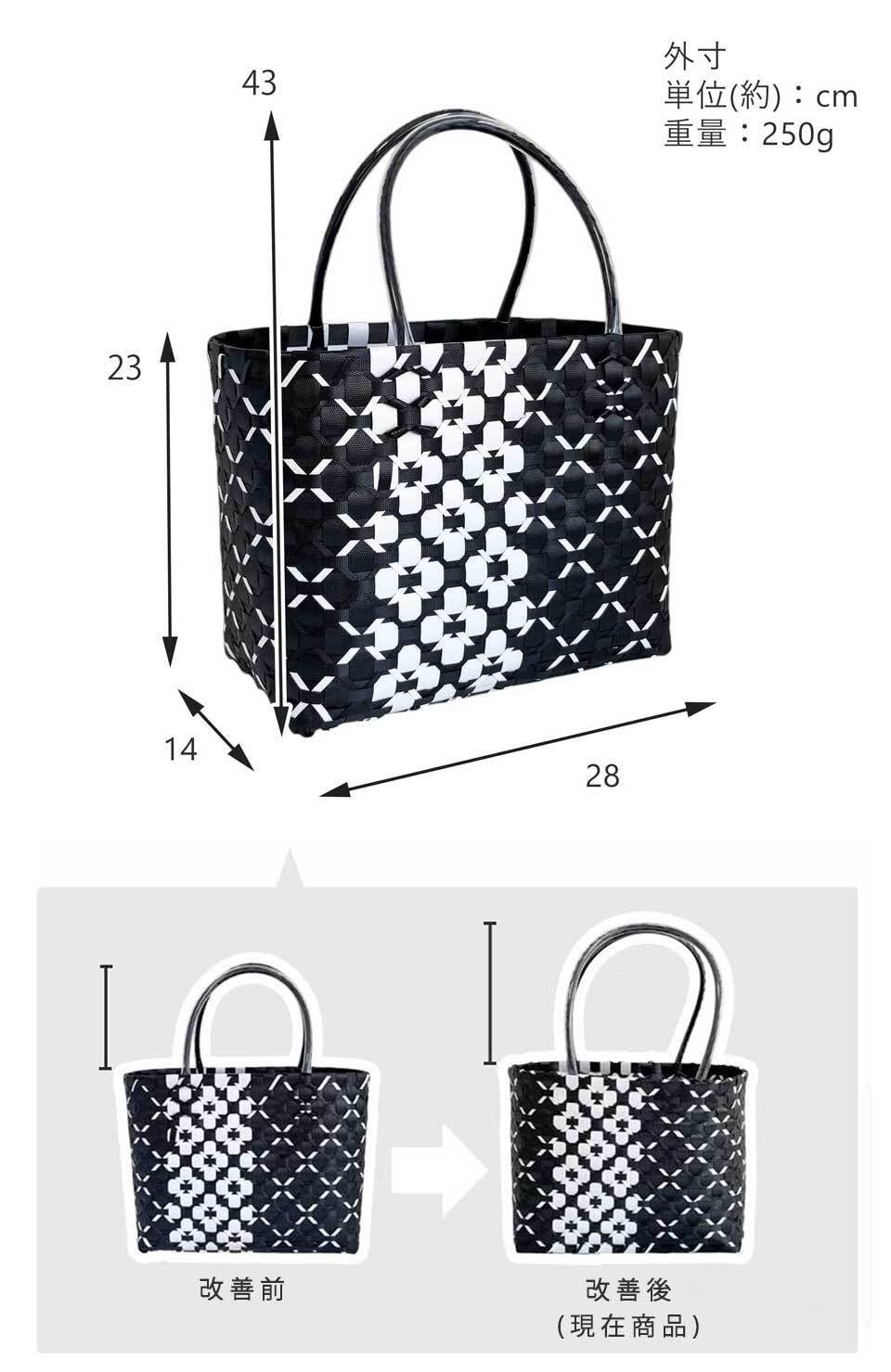 ◈ モノトーンの編み込み模様がスタイリッシュで、普段使いからレジャーまで幅広く使えます。