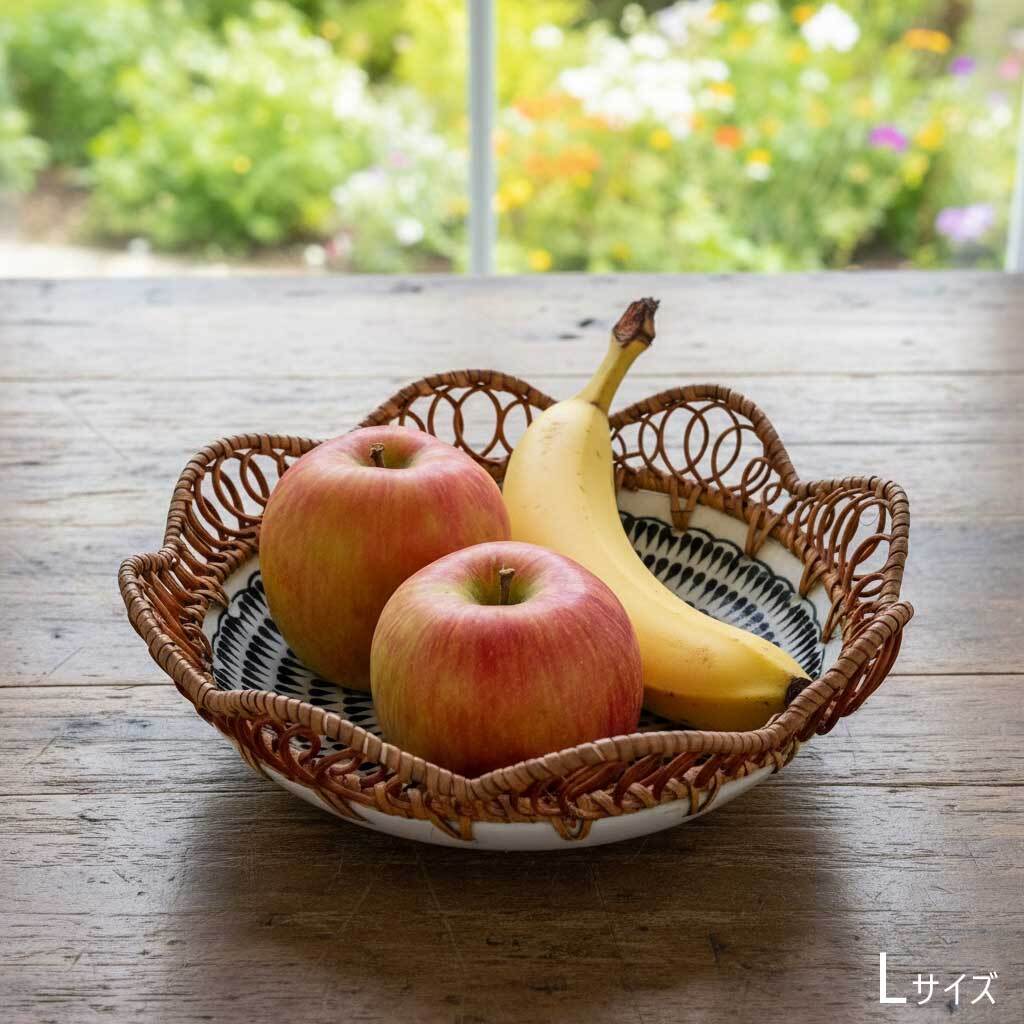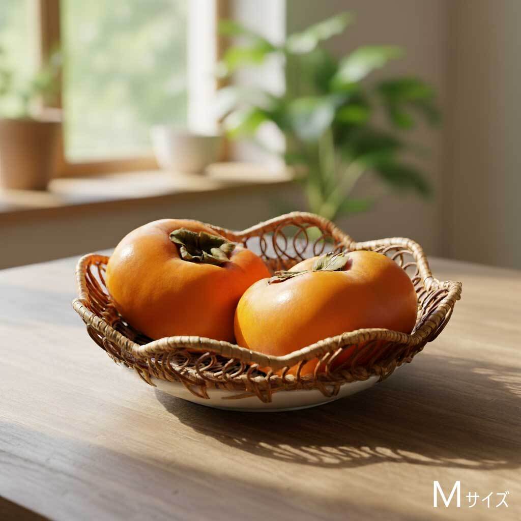 ● ラタンと陶器の組み合わせが美しい、手仕事のぬくもりを感じる小皿です。