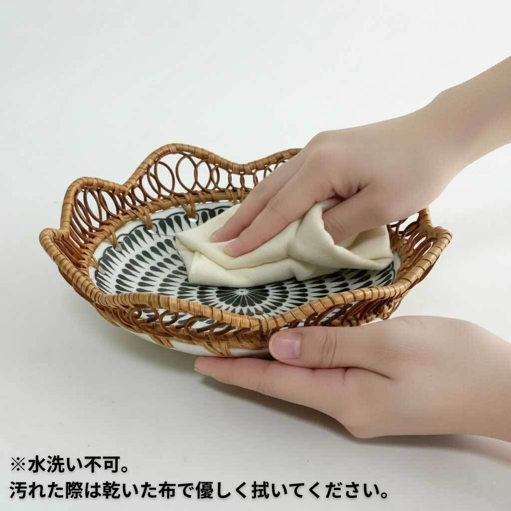 ● ラタンと陶器の組み合わせが美しい、手仕事のぬくもりを感じる小皿です。