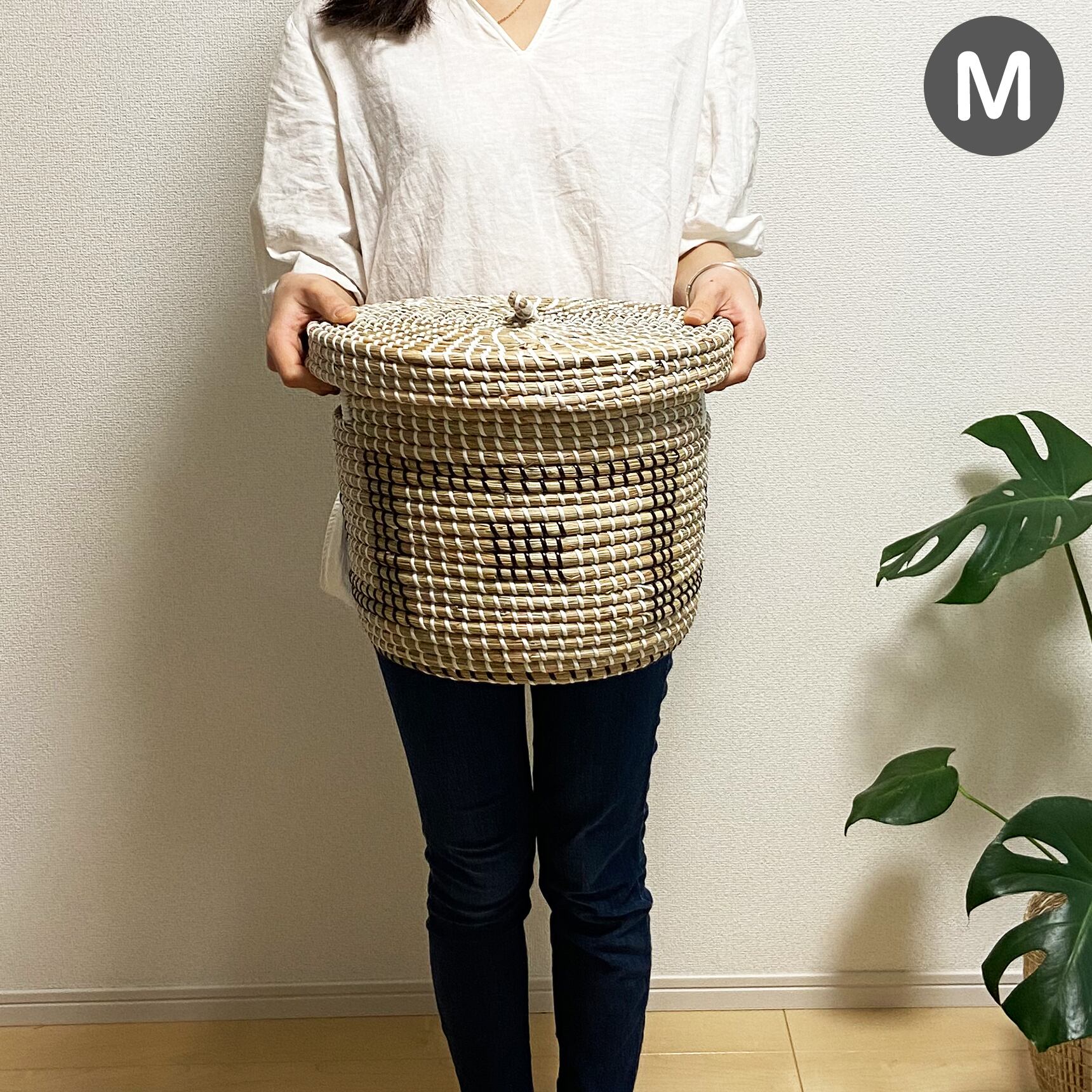 シーグラス バスケット (フタつき) Mサイズ(SGA-505M)