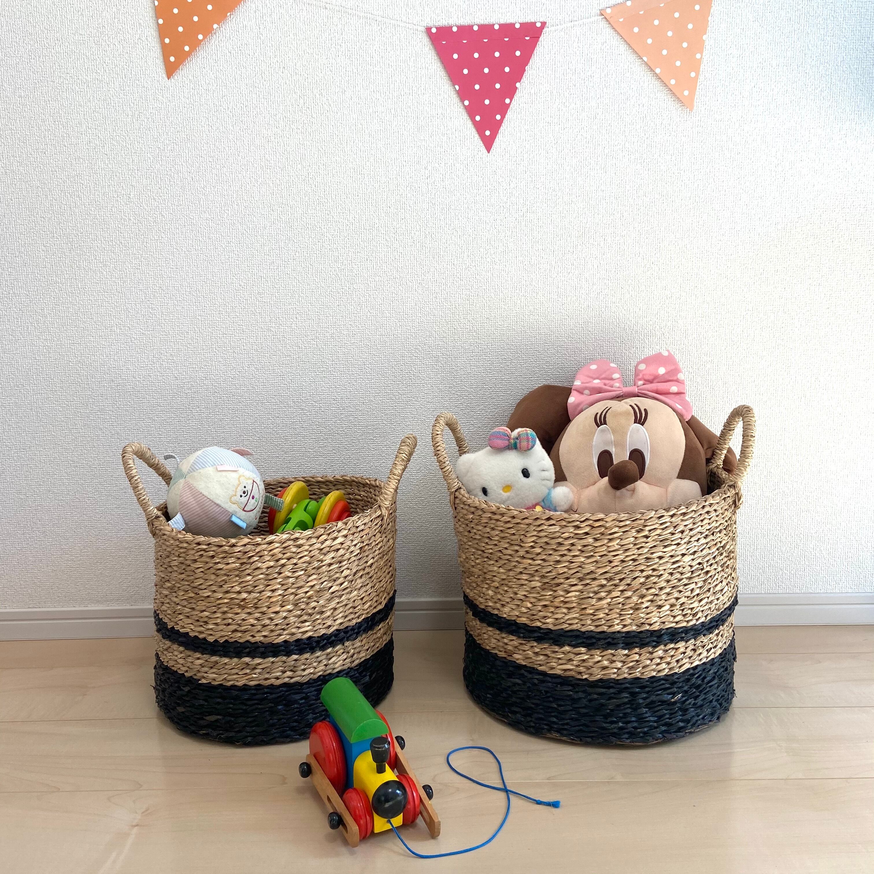◈ ナチュラル+ブラックのカラーデザインのバスケット。