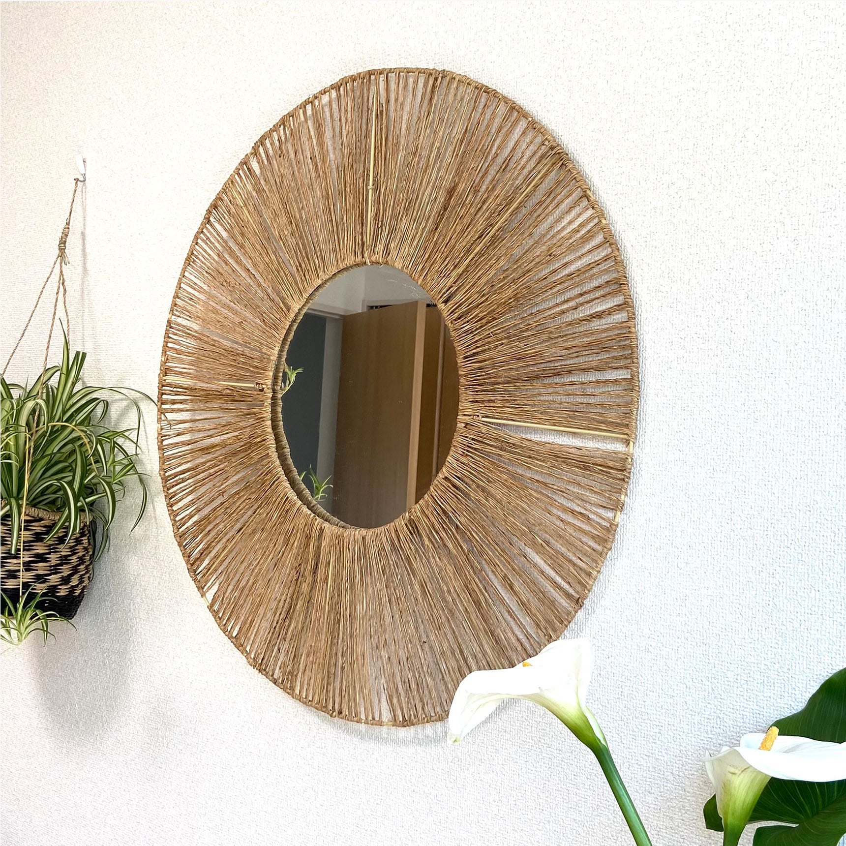 お花や太陽を連想させる、シーグラスでできたデコレーションミラ-です。