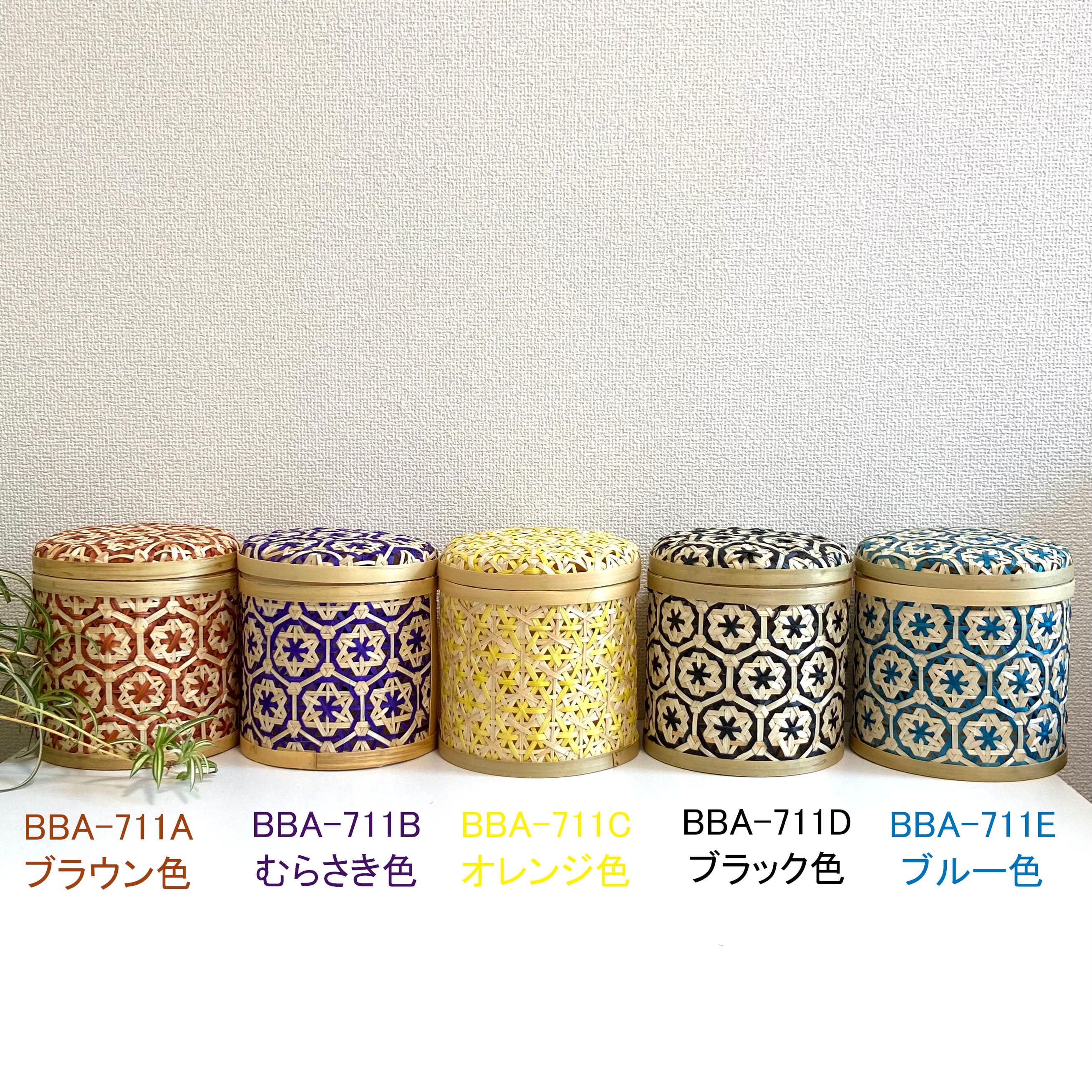 ◈ カラフルな竹ひごでひとつひとつ丁寧に編み上げまたラウンドボックス。