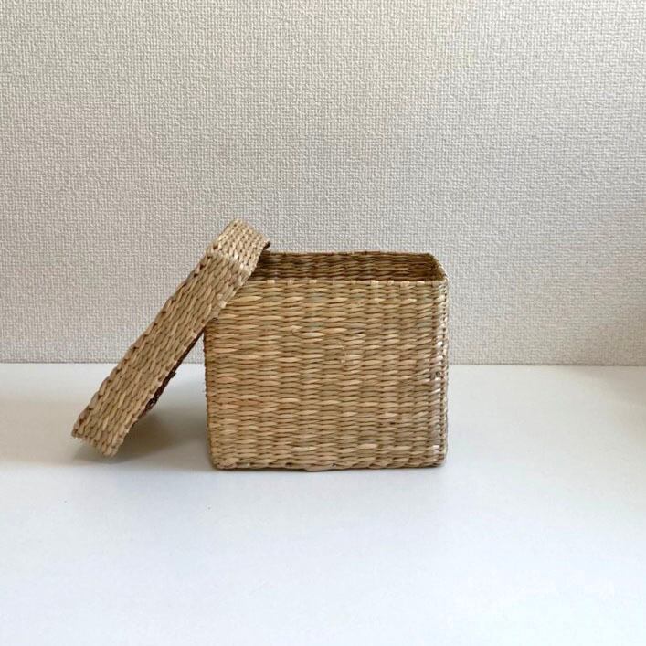 ◈ 天然素材シーグラスで一つひとつ丁寧に編みあげたスクエアフォルムのバスケット。