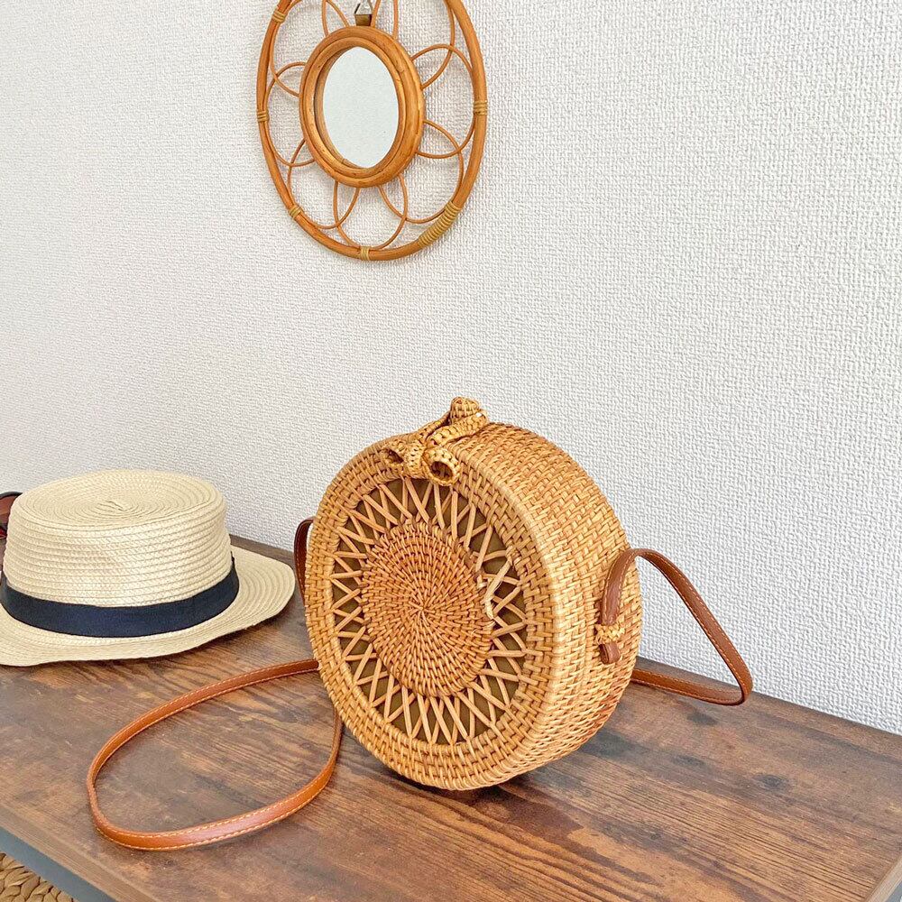◈ ハンドメイドで一つひとつ丁寧に編み上げた丸形のかわいいバッグです。