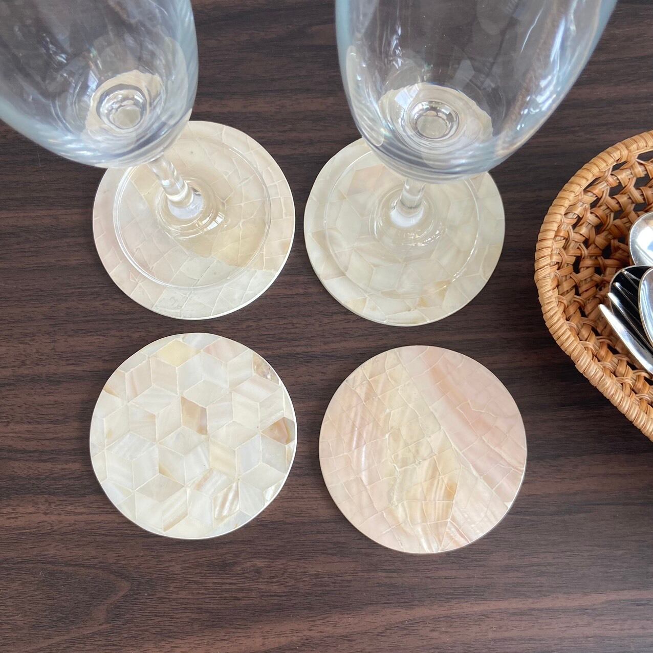 ◈ ハンドメイドで一つひとつ丁寧に製作した丸形の貝殻のコースタ-です。