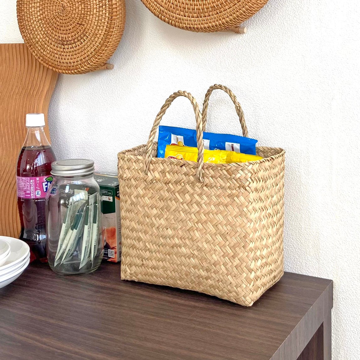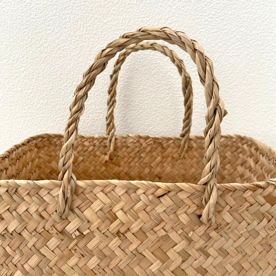 ◈ 天然素材のシーグラスで、一つひとつ丁寧に編みあげた、ぬくもりあるナチュラルなバスケットです。