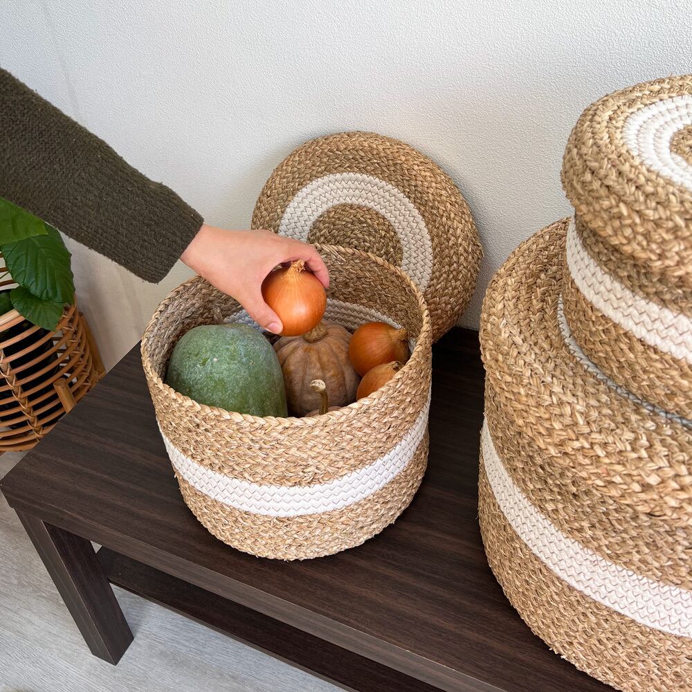 ◈ 天然素材シーグラスとコットンで丁寧につくりあげたバスケットです。