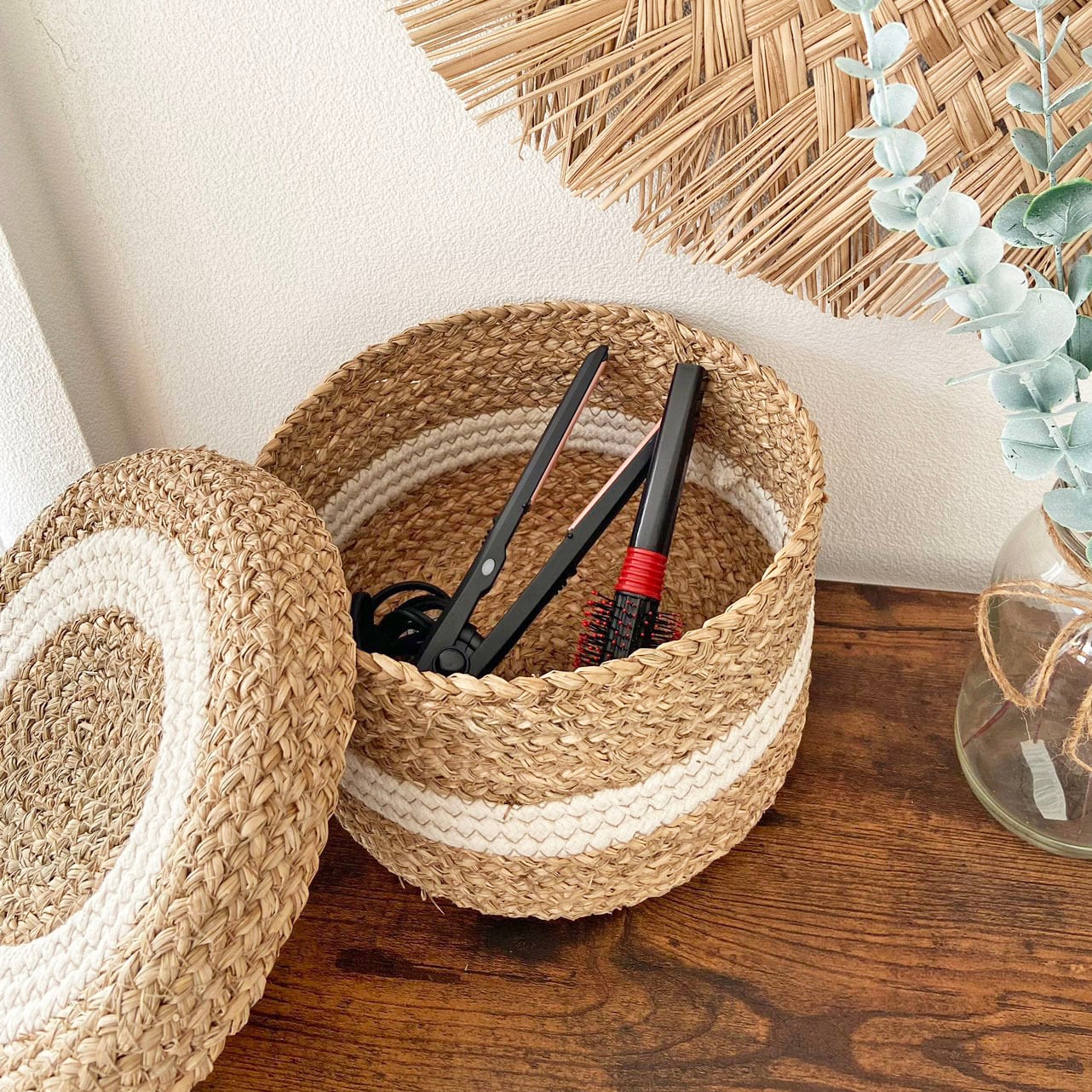 ◈ 天然素材シーグラスとコットンでミシンで丁寧につくりあげたバスケットです。