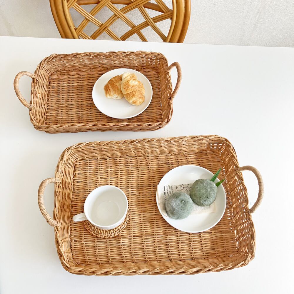 ◈ 天然素材ラタンを使ってハンドメイドで一つひとつ丁寧に編み上げたトレーです。